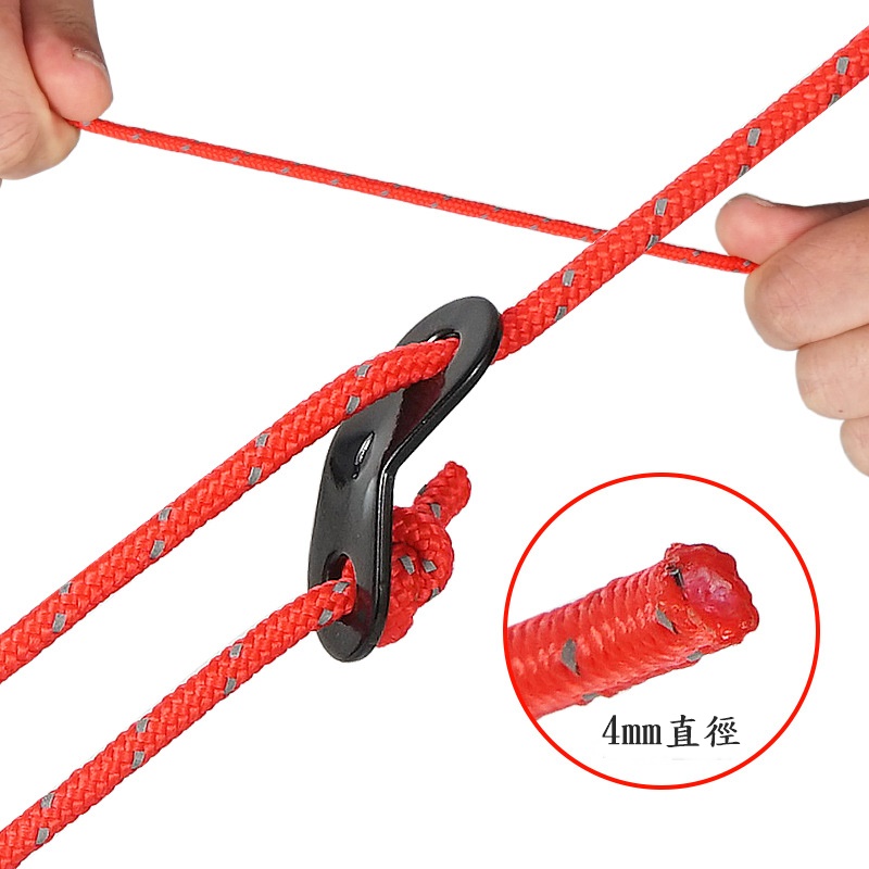 • 附調節片每條營繩皆附雙孔調節片