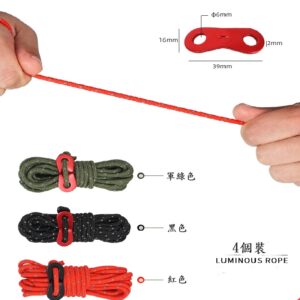 Caiyi 反光天幕固定繩 粗4mm帳篷拉繩 風繩 營繩 雙眼扣 套裝 露營配件 四個裝 / 送收納袋